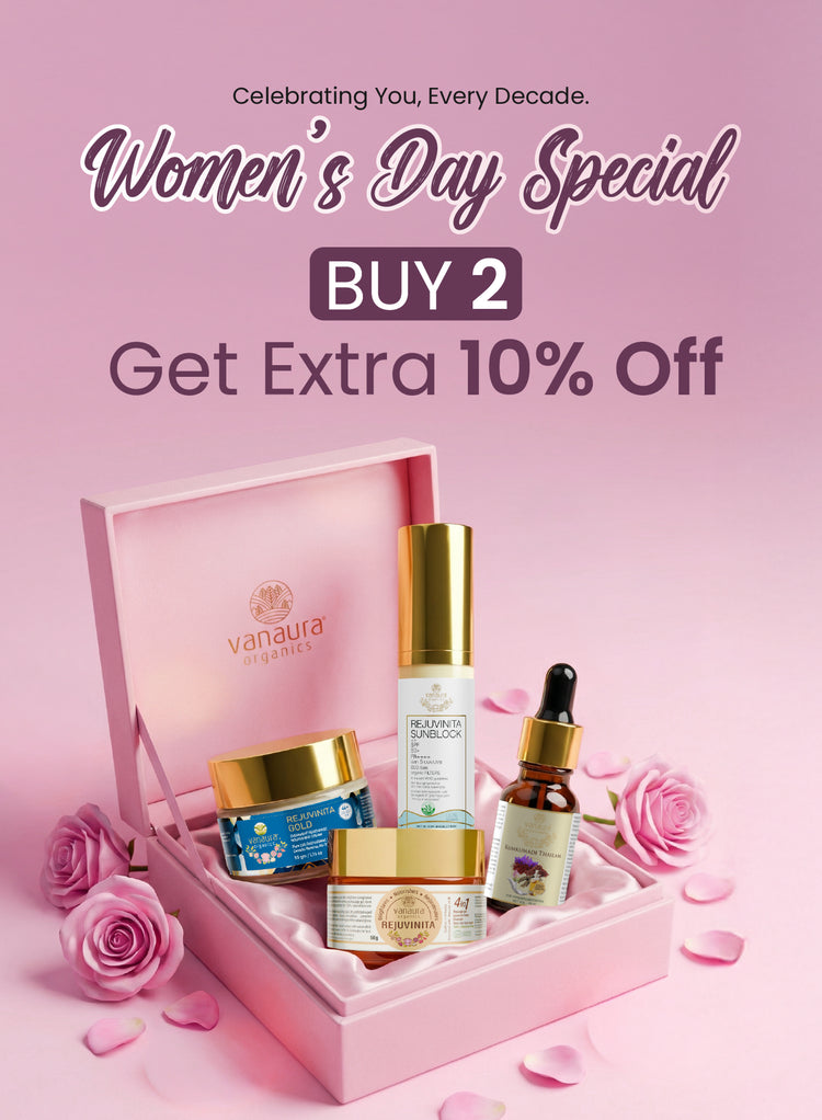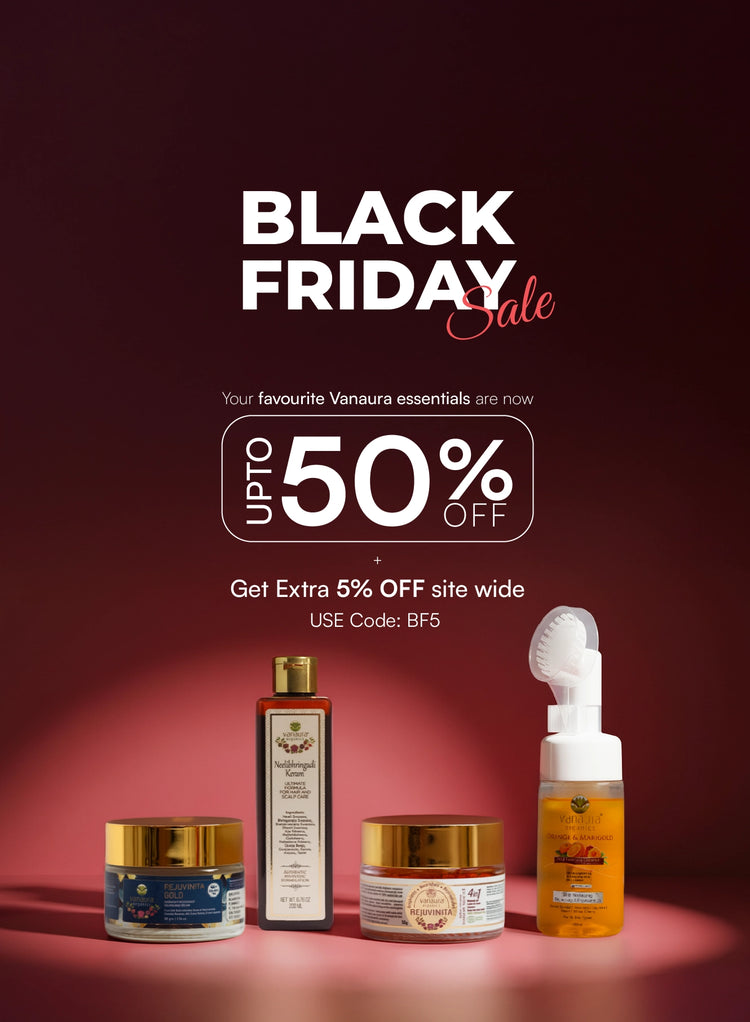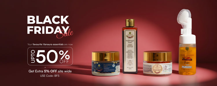 Vanaura Organics was founded by Dr. Nayana Sivaraj, who envisioned safe and natural alternatives to synthetic skincare. Each product goes through our 5 TICK journey before it reaches you. It begins with ethical sourcing from our 100-acre COSMOS-certified farm in the Western Ghats. The ingredients are then processed using Pañcavidha Kalpana (पञ्चविधकल्पना) and enriched with biotech-derived plant actives. They are carefully crafted into safe formulations, packaged sustainably, and designed to deliver deep, transformative care. By blending Ayurvedic wisdom with advanced organic science, Vanaura creates conscious personal care that nurtures skin and hair from within.