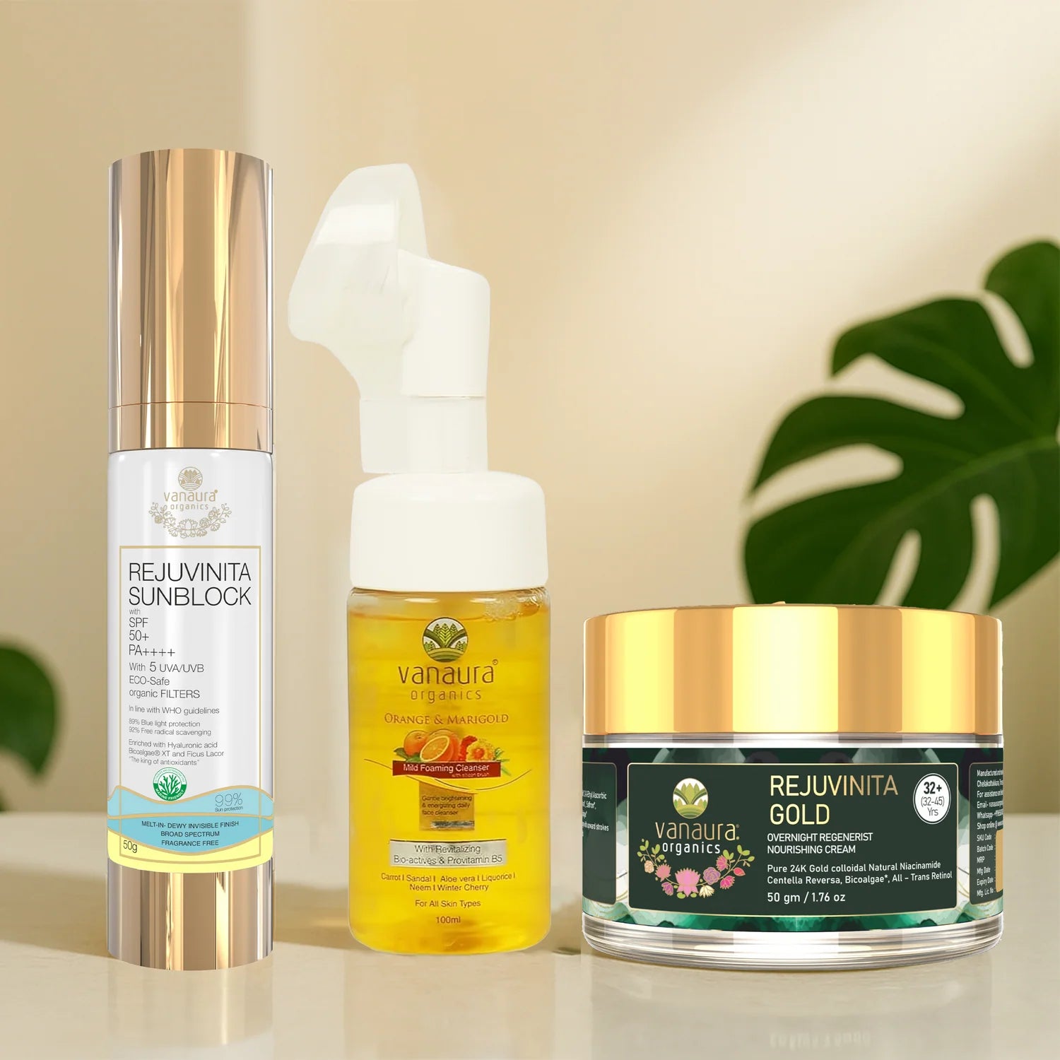 Elevate your skincare routine with this specially curated 3-step ritual for women in their 30s and early 40s, targeting early signs of aging, dullness, pigmentation, and sun damage.