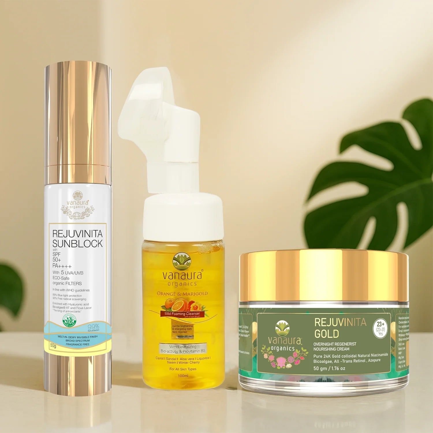 Upgrade your skincare routine with this 3-step combo designed for youthful, early adult skin, targeting early signs of damage, pigmentation, and sun exposure.